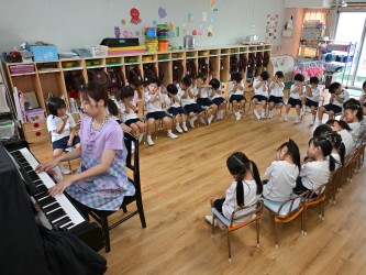 新しいクラスでの友達も増え、毎日仲良く遊んだり、朝の礼拝での歌を頑張っているもも組さん。楽しかったことや嬉しかったことを教えてくれることや、みんなのニコニコ笑顔がほのか先生はとっても大好きです。もも組のみなさん、困ったり助けてほしい時には何でも言ってくださいね。いつでも”ふわふわハートでお助けマン”になります!今はまだ初めての行事やゲームにドキドキしているお友だちもいますが、これからもみんなで仲良く”ふわふわハート”で過ごし、楽しい思い出いっぱいの1年間にしましょうね。