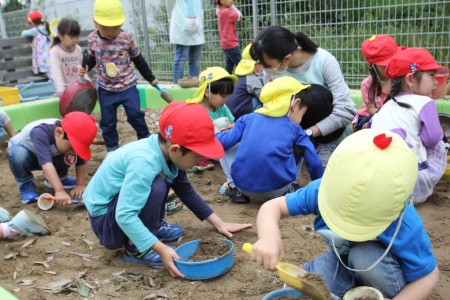 はだし保育、食育、わらべうたを柱とした人の根本となるココロを育てる保育を重視しています。