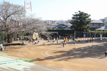 「環境の中で子どもは育つ」をモットーに広い園庭 恵まれた自然環境を生かした、子ども達がとことん遊びこめる環境づくりを目指しています。広い園庭で季節の香りを感じながら、子ども達はたくさん遊んでいます。子ども達にとって、園庭の遊びは何よりも楽しいものです。楽しいから夢中になって、考え、工夫するようになります。大勢の友だちと一緒に遊ぶ方がもっと楽しいから、さらに考え、工夫する力が身についてきます。この考え、工夫する力が子ども達の生きる力となると信じています。