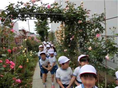 教育の場面では、①自ら進んで挨拶をすることができる。②人の話はしっかり聞くことができる。③1年を通して園児全員がよく遊び、体育等を通して運動することが習慣化した子ども達は、遊びの楽しさを知り、運動能力も高まり、かつ体幹が鍛えられる。④音楽に親しむ心を育てるために、3歳児から継続的に指導しており、年少児はすずやカスタネット、年中児からは鍵盤ハーモニカ、卒園までには全員数曲演奏できる。⑤自然いっぱいの環境の中で、昆虫採取、草葉の観察など図鑑片手に好奇心旺盛な子ども達が育つ。⑥各種学園行事などを通して集団で活動することで、協調性、コミュニケーション能力、忍耐力、連帯感などを身につけることができる。⑦英語教育に関しては、ネイティブスピーカーとともに、ゲームや音楽に合わせて楽しく英語に親しみ、身体いっぱい使って、英語に触れることができる。
