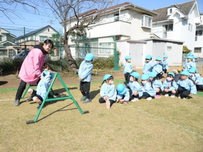 入園したばかりの頃は、不安で泣いていた子供達。 3学期には、日々の生活や沢山の行事を経て友達の名前を呼び合うようになり、集団遊びを楽しめるようになります。1学期に比べ心も体も大きく成長し自信をもって生活を楽しんでいる姿に喜びを感じます。