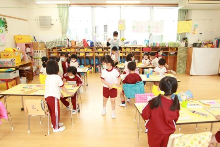 今年度は年中組からも持ち上がりで年長組の担任をしています。