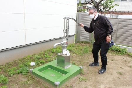 お砂場では道具や水を使って友達同士協力し合いながらの遊びが展開されています。